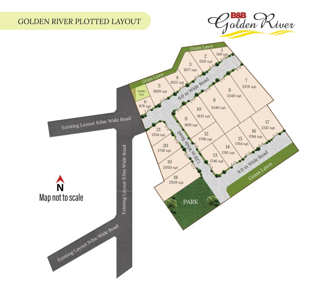 B&B Golden River, a premium residential project by trusted developers and builders, offering exclusive DTCP approved plots in Vellore with individual boundary walls, spread across 13.5 acres of serene landscape. Ideally located just 1.6 km from the Ponnai-Thiruvalam Junction on NH4, and close to BHEL/SIPCOT and the Ponnai River, this project provides convenient access to major hubs while ensuring a secure and peaceful living environment.